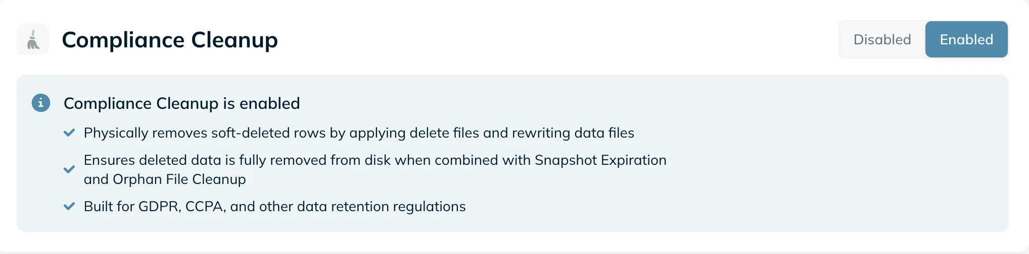 Ryft compliance cleanup consolidates all the complexity of keeping Iceberg tables compliant into a single checkbox.