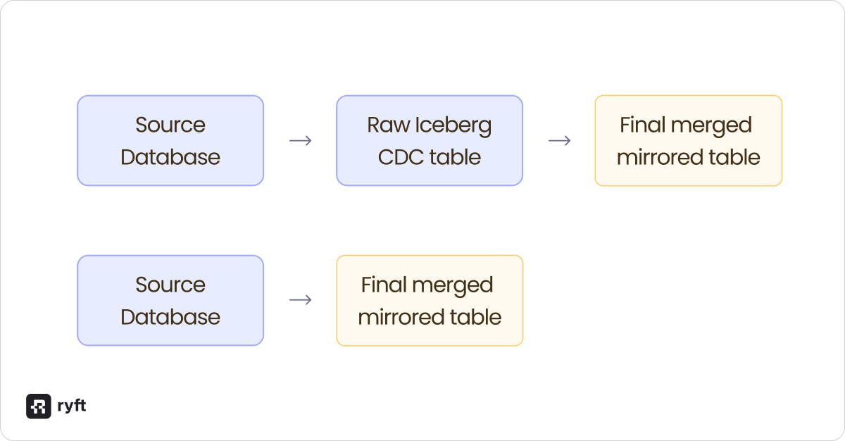 - Mirror table: The final materialized table that shows the current state of your source data